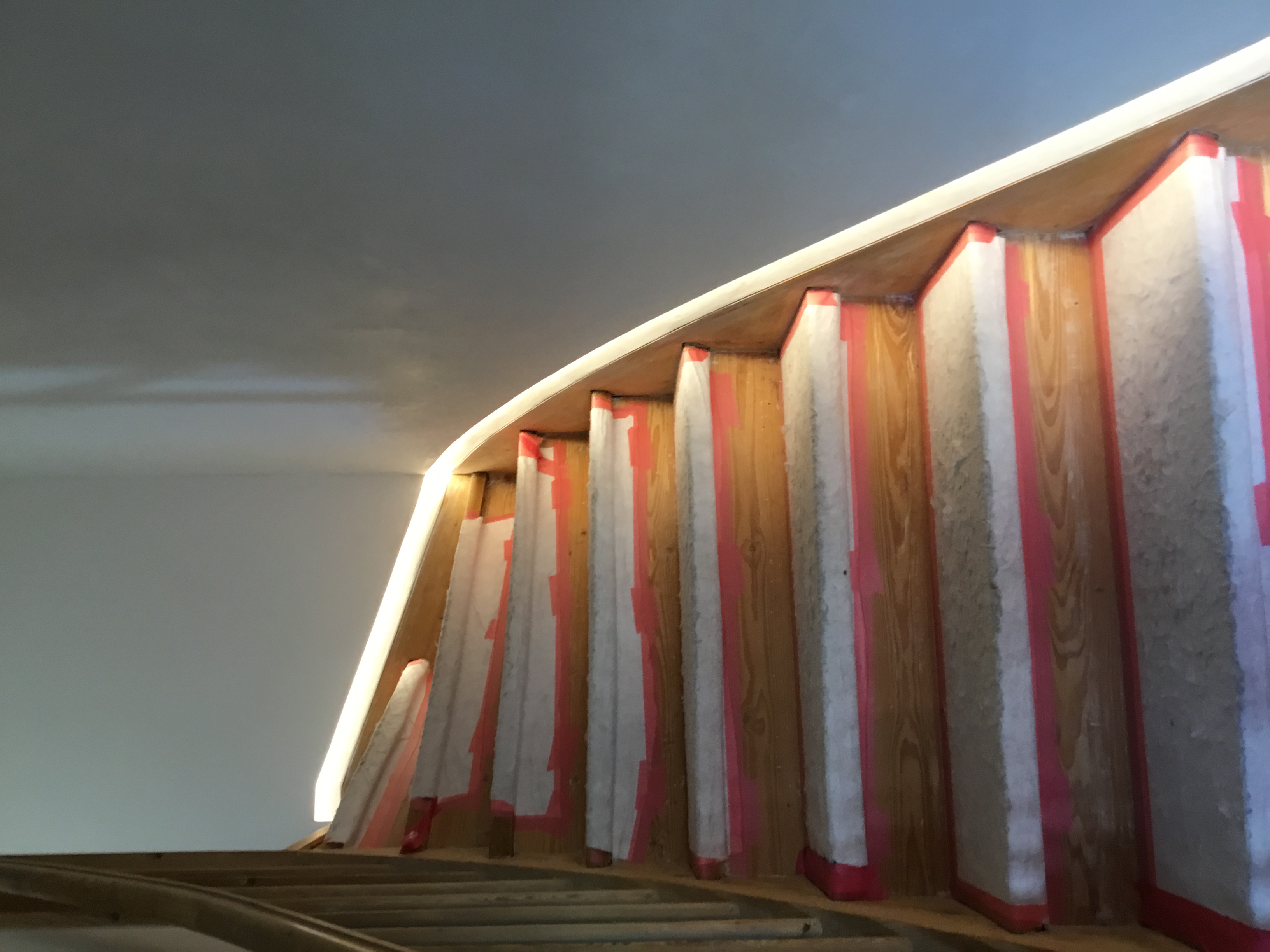 | • Profiltyp: Die Verborgene (Gips, flächenbündig) • LED: warmweiß oder neutralweiß, dimmbar • Zusatz: integrierte Notlicht-LEDs (DIN-konform) • Besonderheit: fließender Übergang zwischen Stufenbeleuchtung und Wandlicht |